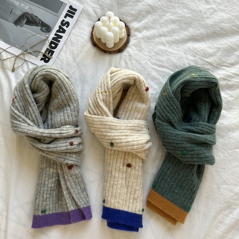 秋と冬の女性かわいいカラフルな点線の無地のニットスカーフカシミアスヌードスカーフ