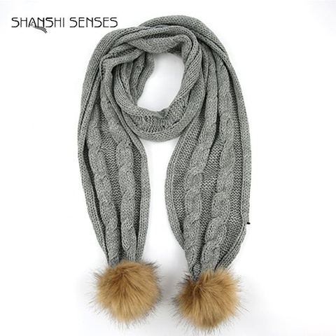 ポンポン付きカスタムウィンタークラシックニットロングスカーフ