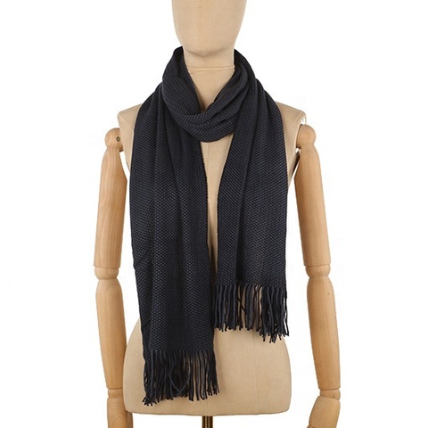 フリンジ付き男性用卸売パーソナライズされたデザイン冬アクリルニットスカーフブラックふわふわロングニットスカーフ